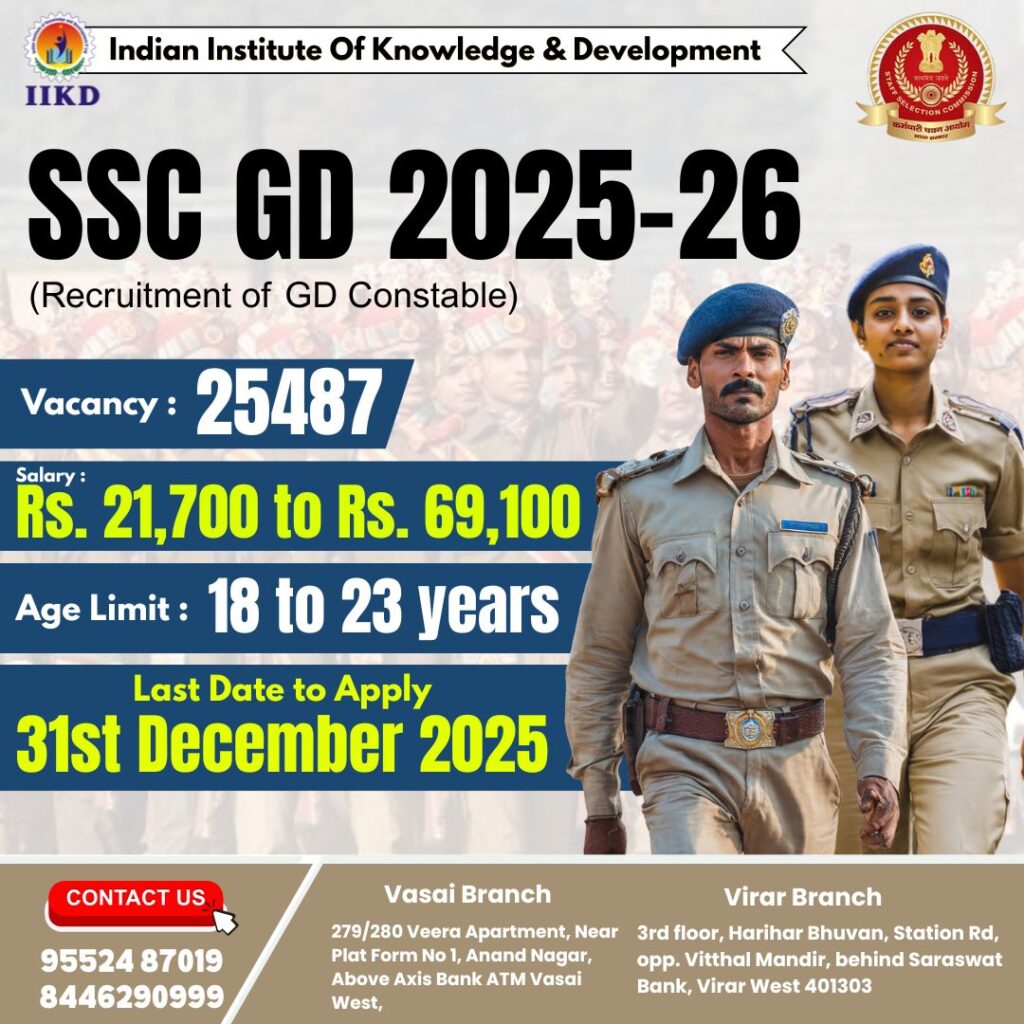 At IIKD, we aim to help students reach their full potential and grow into well-rounded professionals and conscientious members of society. If you are preparing for competitive exams like the SSC GD we offer comprehensive training to ensure success in this prestigious recruitment process.