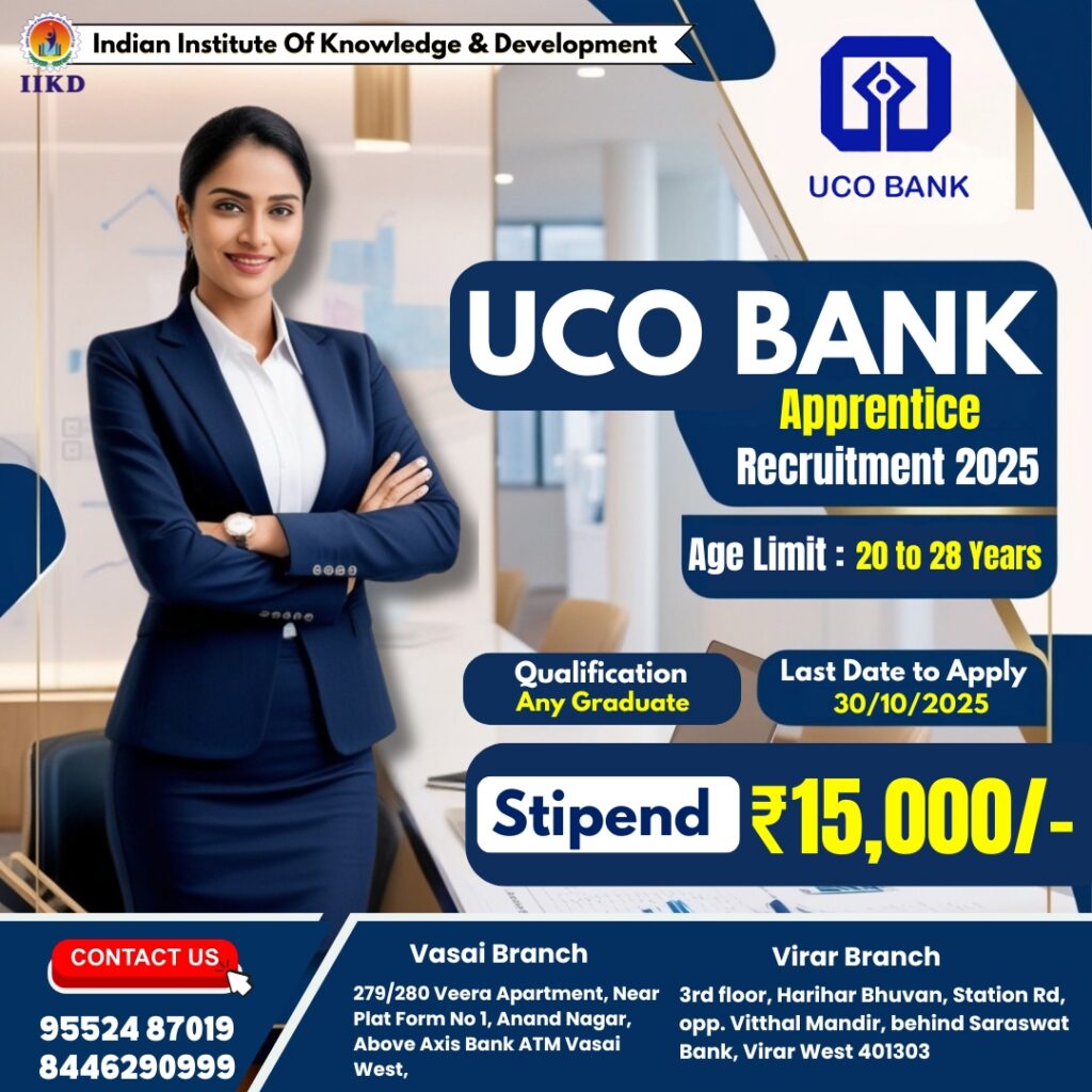 It is a skill training engagement under the Apprentices Act, 1961, where UCO Bank (a leading public sector bank) recruits apprentices for one year to provide hands-on banking experience. Important: This is not a permanent job but a training program with a stipend.
